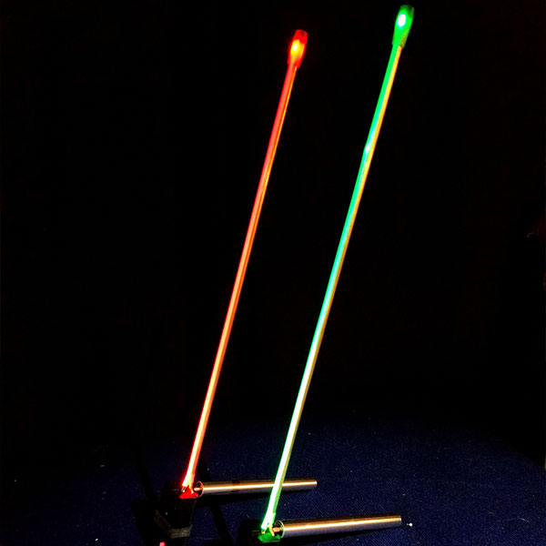 The Electric Light Dowsing Rods EMF Version reacts to EMF (ElectroMagnetic Frequencies) and changes colors depending upon the signal strength. In non-EMF mode you can select 5 amazing, neon colors: Blue, Green, Pink, Red and White..